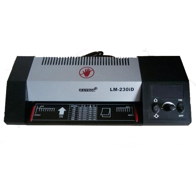 LM-230iD - пакетный ламинатор от компании Rayson. Предназначен для ламинирования печатной продукции до формата А4 включительно. Регулировка температуры с шагом в один градус, реверс, четыре вала (два из них с внешним нагревом), работает со всеми толщинами пленок. Это модель для офисов и организаций со средним объемом работ.