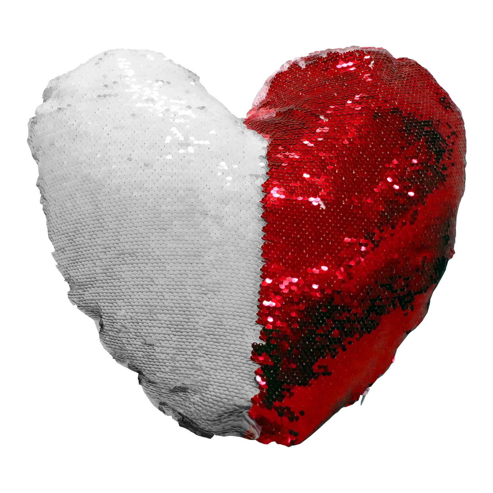 Одна сторона наволочки сделана из двухсторонних пайеток - одна сторона пайеток цветная, другая белая, предназначенная для сублимационной печати. Другая сторона наволочки белая ткань