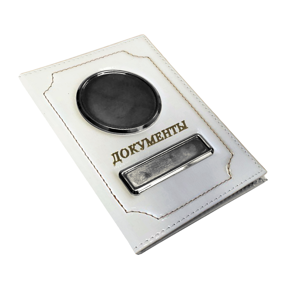 Обложка для автодокументов с надписью, нат. кожа, белая