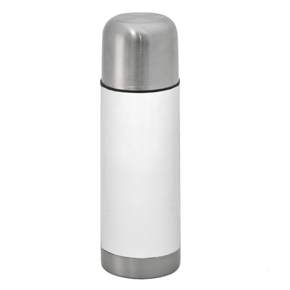 Термос металлический под сублимационное нанесение изображения. Термос не бьется, его  удобно брать с собой в поездку, долго хранит тепло напитка и его колпачок можно использовать, как кружку. Идеальный размер - хорошая вместительность, а также полноцветные изображения и надписи на самом термосе.