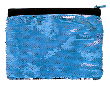 Одна сторона косметички сделана из двухсторонних пайеток - одна сторона пайеток цветная, другая белая, предназначенная для сублимационной печати.