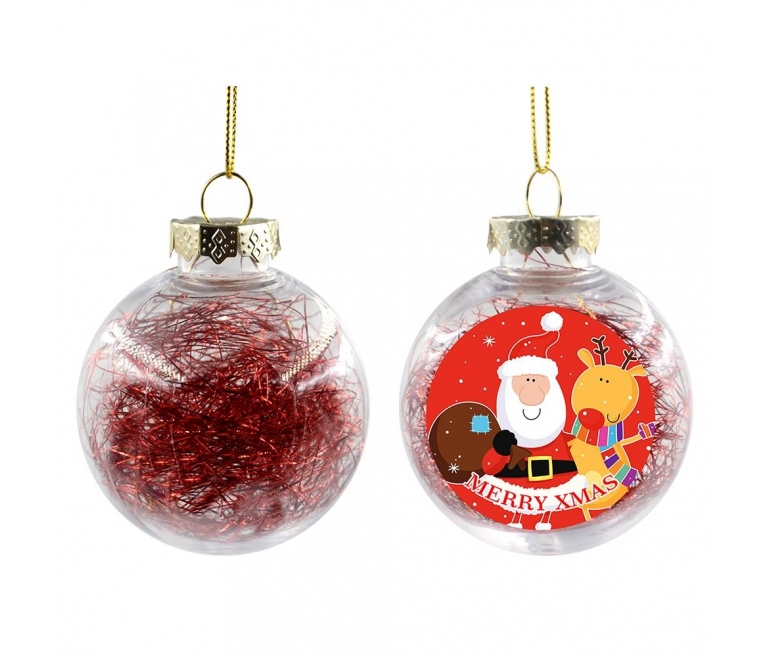 Новогодний шар 8 см прозрачный с красным наполнителем