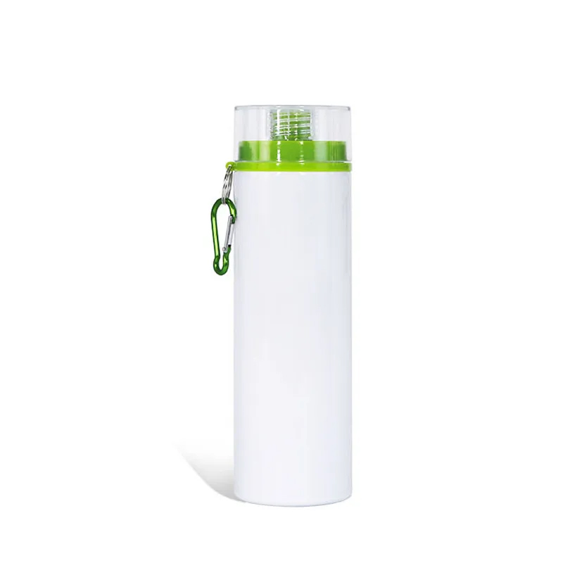 Бутылка спортивная алюминиевая с зелёной крышкой и карабином 750 мл