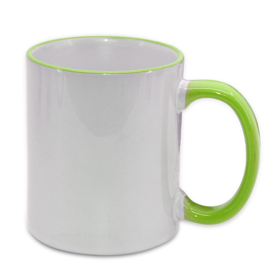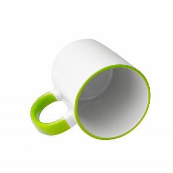 Кружка Стандарт белая с светло-зеленой ручкой и ободком