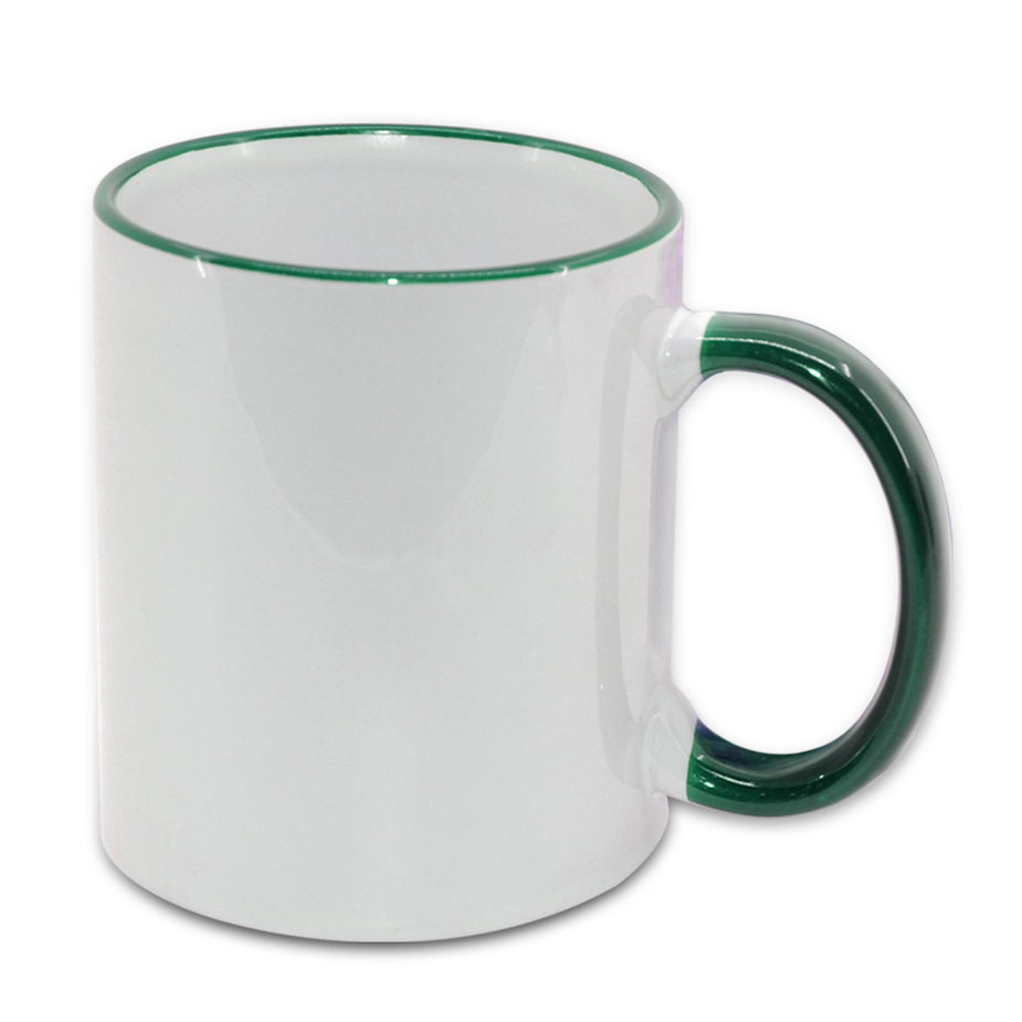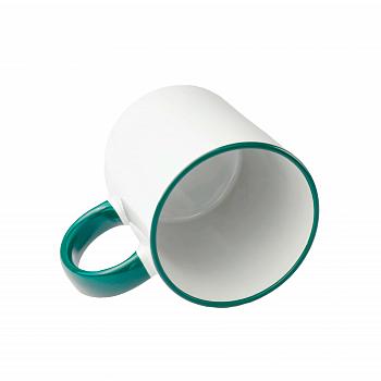 Кружка Стандарт белая с темно-зеленой ручкой и ободком