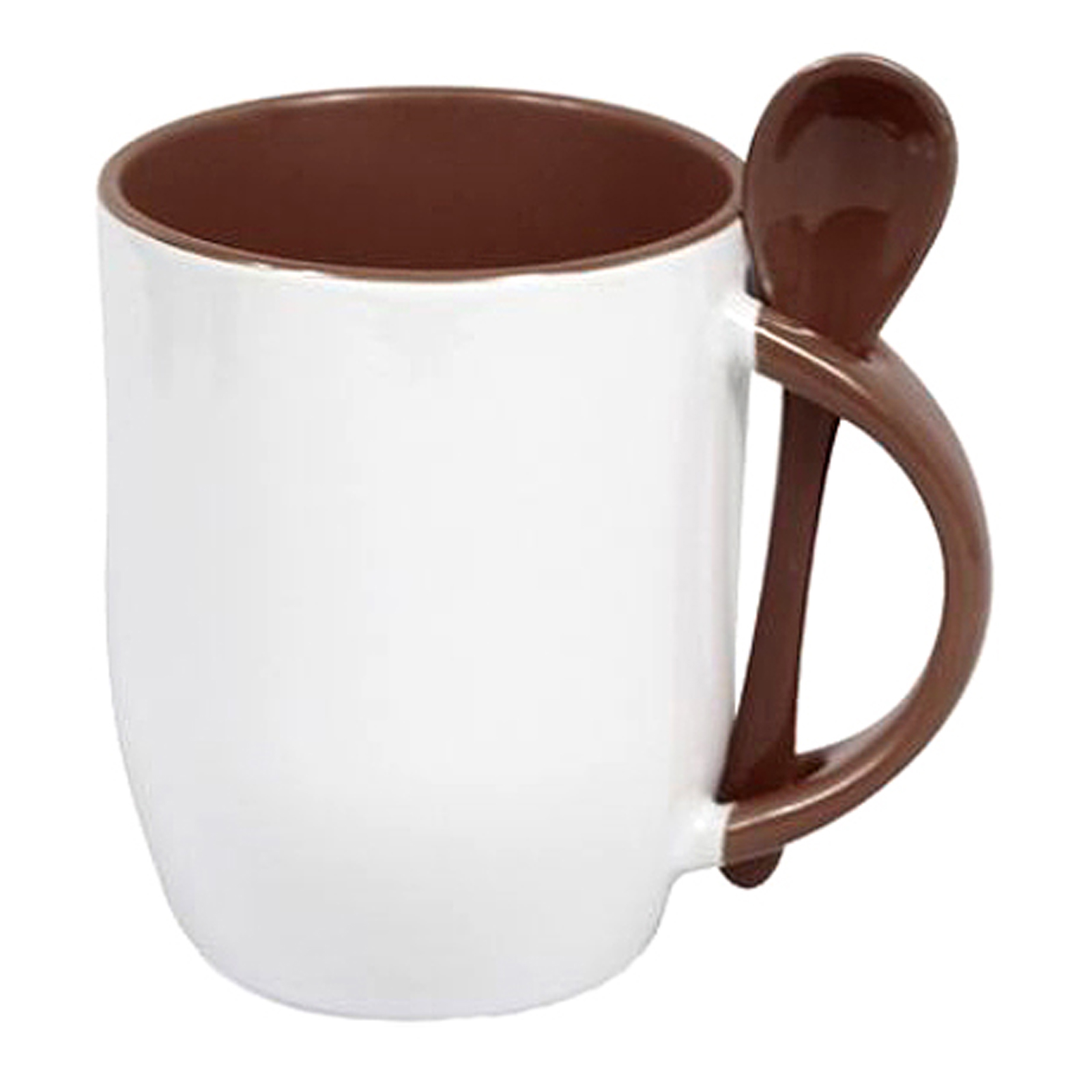 Белая кружка с цветной внутренней поверхностью и ложкой, вставляющейся в ручку для полноцветной запечатки поверхности. Приобретается как индивидуальный подарок, так и корпоративный, коллективный (дет.сады, школы) презент, кроме этого можно использовать в рекламных целях.