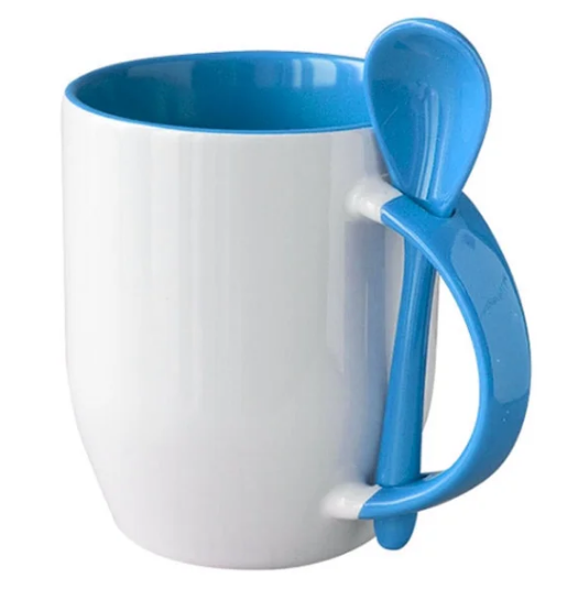 Белая кружка с цветной внутренней поверхностью и ложкой, вставляющейся в ручку для полноцветной запечатки поверхности. Приобретается как индивидуальный подарок, так и корпоративный, коллективный (дет.сады, школы) презент, кроме этого можно использовать в рекламных целях.