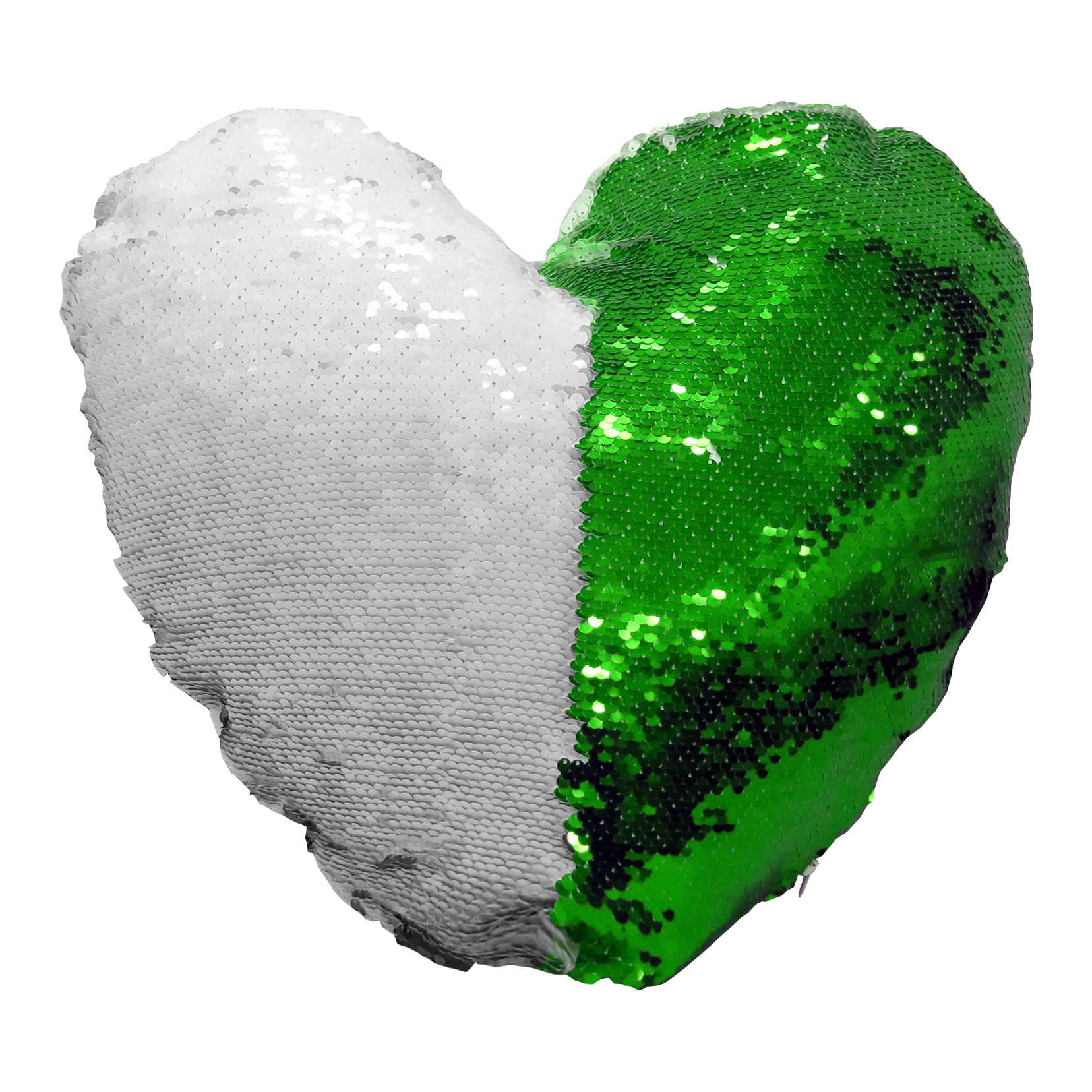 Одна сторона наволочки сделана из двухсторонних пайеток - одна сторона пайеток цветная, другая белая, предназначенная для сублимационной печати. Другая сторона наволочки белая ткань