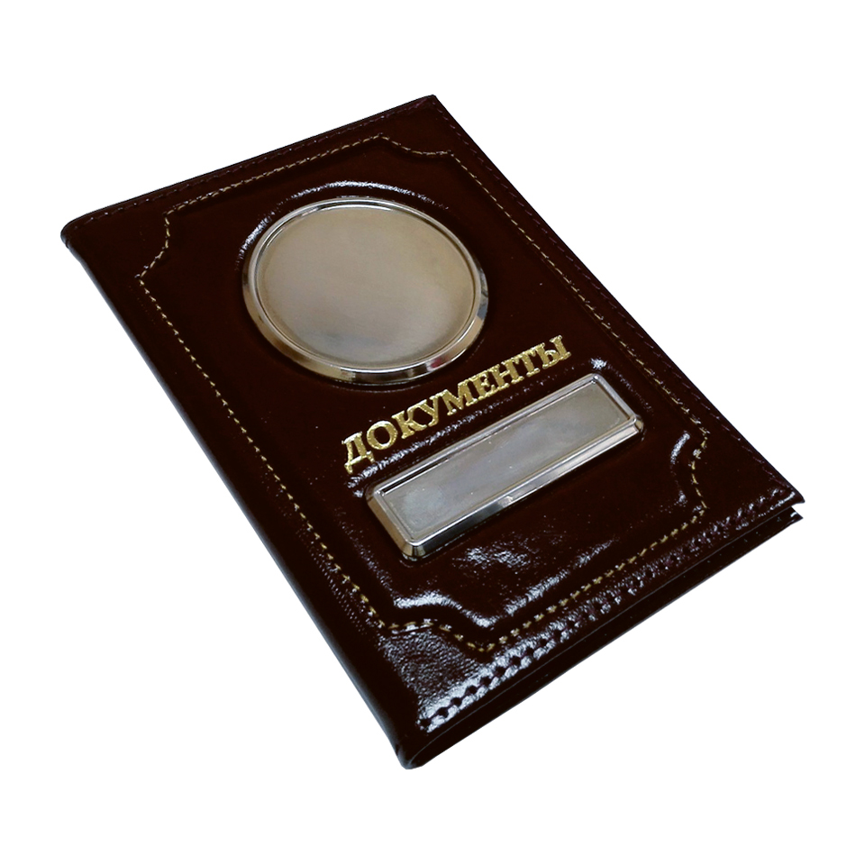 Обложка для автодокументов с надписью, анилин, нат. кожа, коричневая