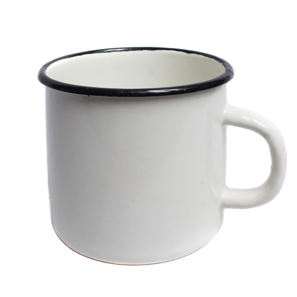 Кружка эмалированная белая черный кант