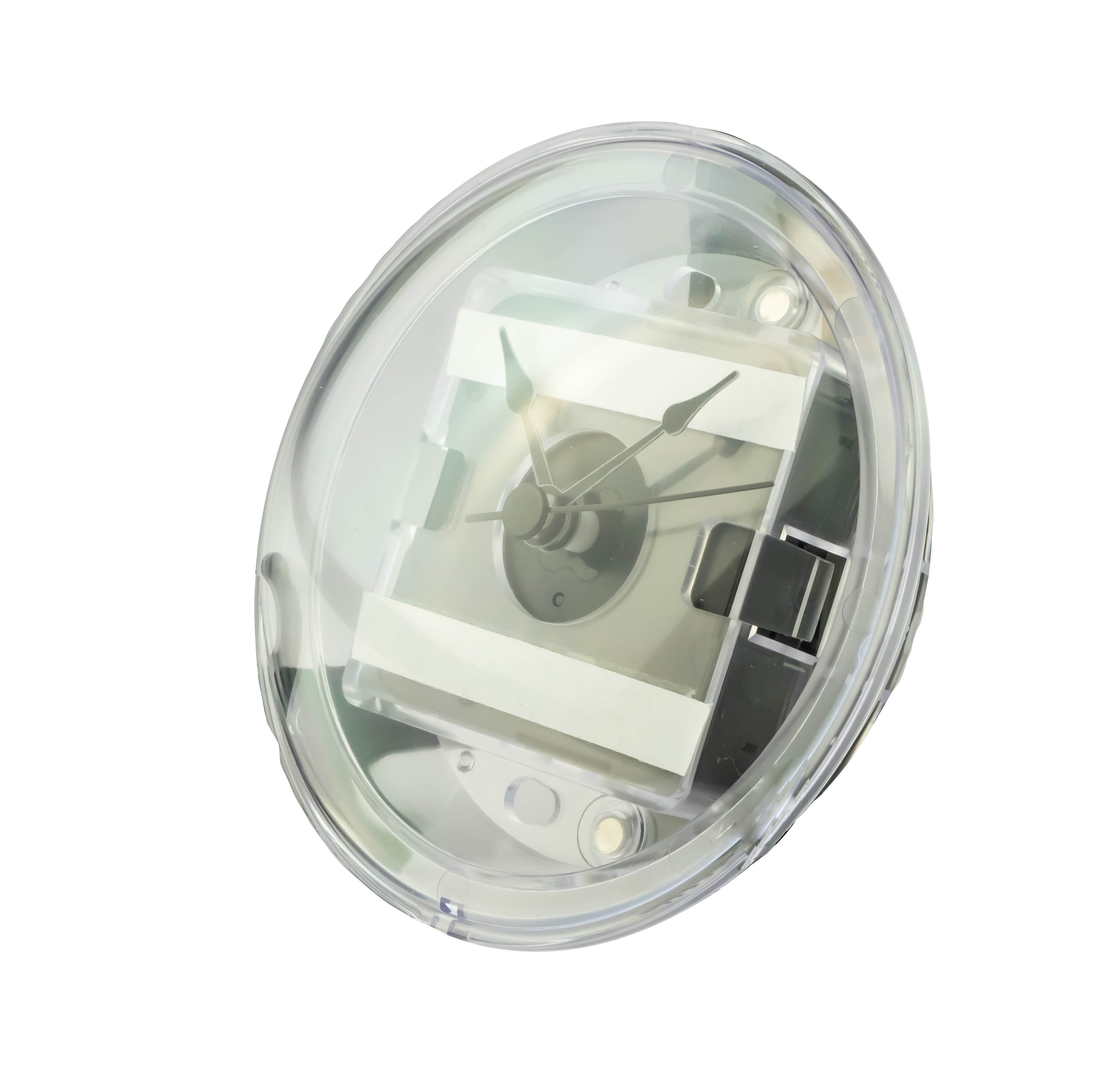 Часы акриловые круглые на магните отлиты из прозрачного пластика.