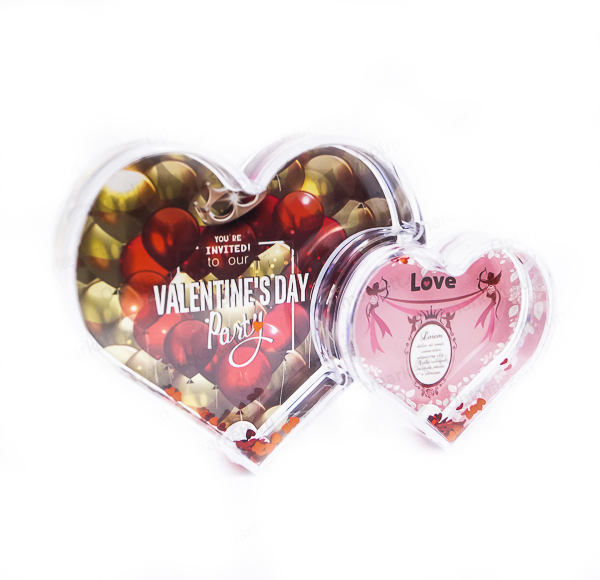 Рамка водяная, в виде двух сердец, с конфетти сердечки