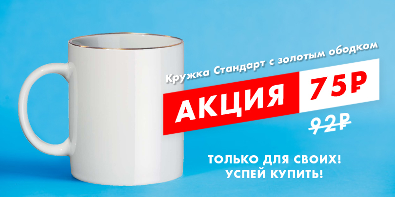 Только для постоянных клиентов нашего интернет-магазина, кружка Стандарт белая с золотым ободком - всего за 75 рублей! Отгрузка кратно коробке - 36 шт. Не более 108 шт в одни руки.